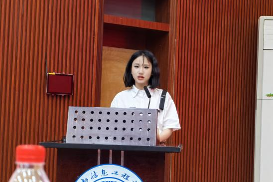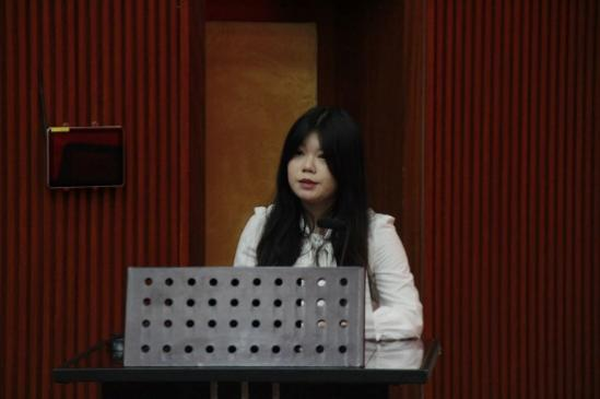 大会第二项,团委副书记张仕麟同学发言。她向在场的学生会新成员分享了自己工作两年来的收获和体会,并表示希望学弟学妹们未来能够积极参与工作,得到锻炼和成长。