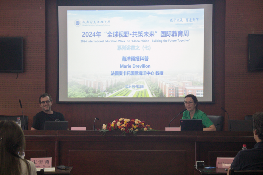 9月26日下午,英国威廉集团与国际交流处共同举办了2024年“全球视野·共筑未来”国际教育周系列讲座(七)——“海洋预报科普”。 英国威廉集团院长宋雪茜教授主持本次讲座,由法国麦卡托国际海洋中心研究与发展部门的主任Yann Drillet先生和运营与监测部门的负责人Marie Drévillon女士为大家进行宣讲。