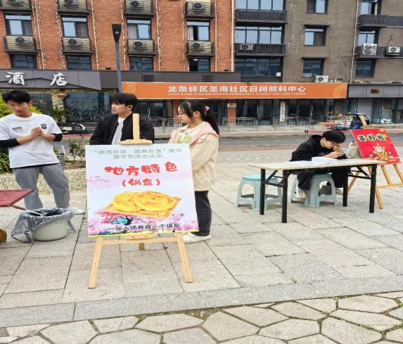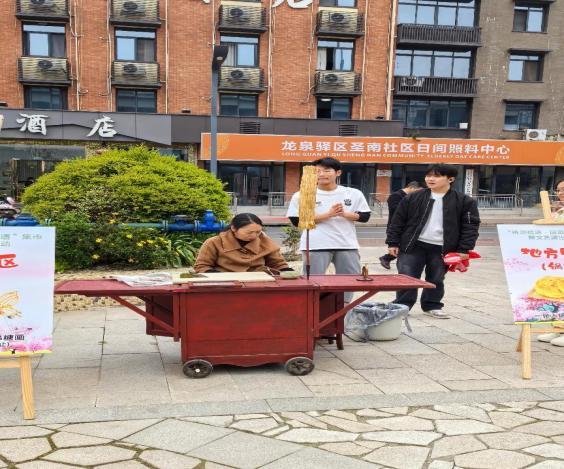 3月22日中午,志愿者们早早抵达社区布置场地。大家分工协作,糖画、剪纸、扎染等体验区迅速搭建完成,传统美食和手工制作区吸引了不少居民的目光。下午活动正式开始,志愿者们热情引导,细心讲解,以川剧变脸等各项非遗文化节目表演赢得观众阵阵掌声。