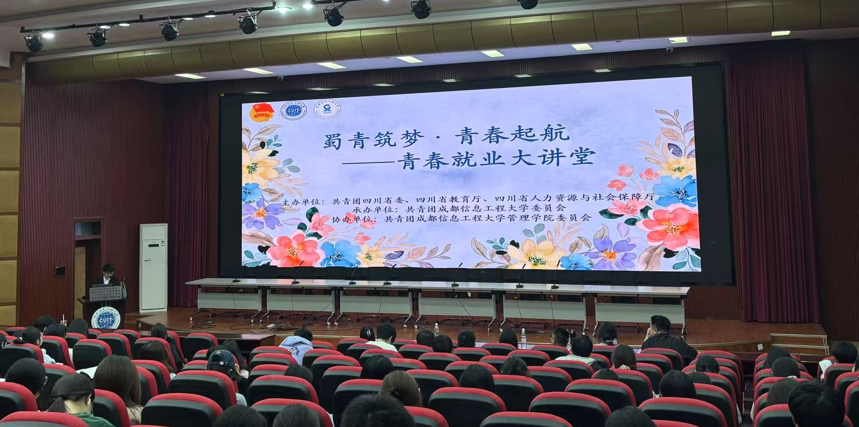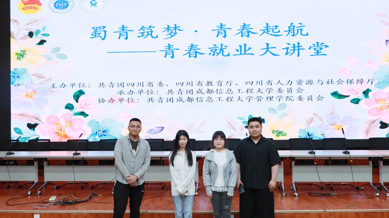 2025年4月14日晚,"蜀青筑梦·青春起航——青春就业大讲堂"在三教学术报告厅顺利举行。讲座由共青团省委、四川省教育厅、四川省人力资源与社会保障厅主办,共青团William希尔委员会承办,共青团英国威廉集团委员会协办。讲座聚焦大学生职业规划,邀请五位优秀学长学姐分享经验,吸引众多学生参与。