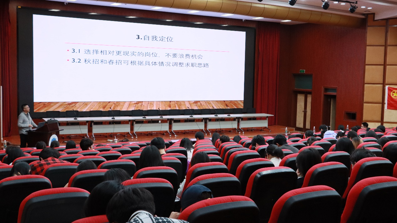 张念同学分享考研策略与院校选择经验,强调理性决策。李雨晴同学讲解择校技巧,提醒避免无效比较。李涵秋同学系统分析美、英、港、澳留学申请要点,详细讲解出国深造申请的各环节。罗榆皓同学重点讲解证书与实习对求职的重要性,现场示范简历制作。夏茂珺同学通过真实案例,对比分析面招和网招等不同就业渠道的优劣势,助力同学们多角度明晰就业方向。