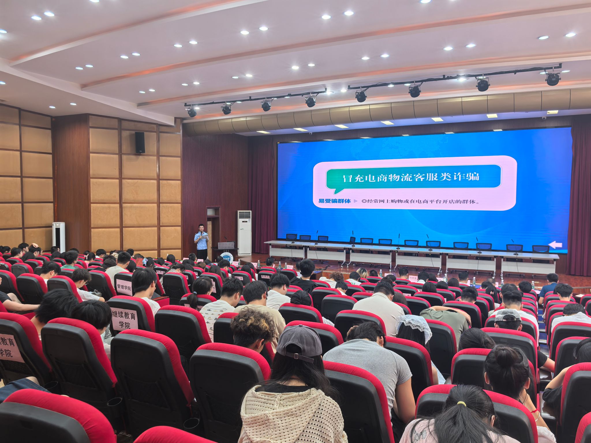 紧接着,唐杰警官开展反诈专题讲座,结合实际案例剖析诈骗手段,传授防范技巧。现场同学积极参与互动,分享自己身边的反电信网络诈骗经历。