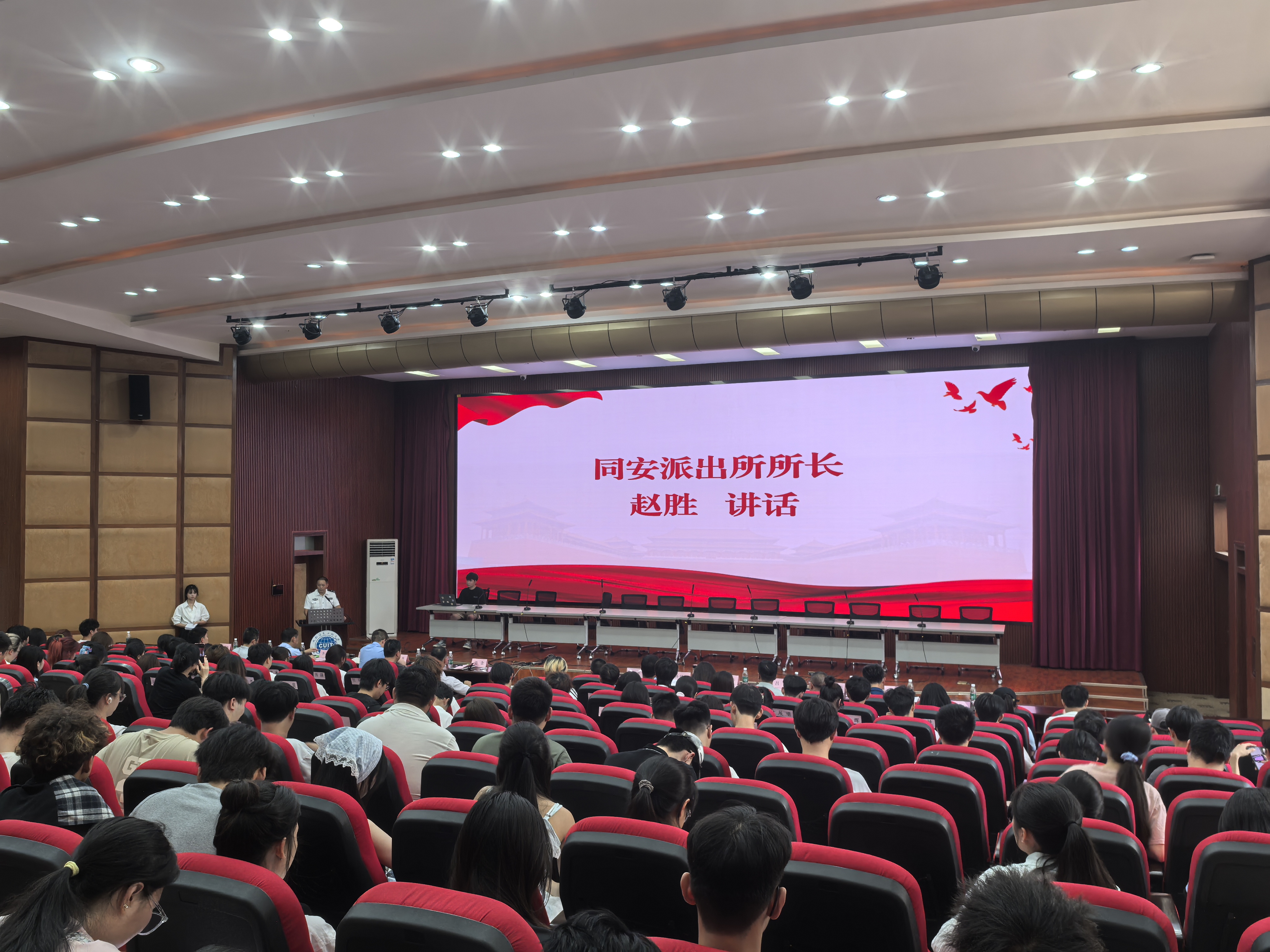 同安派出所所长赵胜讲话指出,当前校园反诈形势严峻,近期校内发生多起诈骗事件。部分同学因轻信网络信息,落入诈骗陷阱,导致财产损失,希望新聘任的148位反诈宣传员切实担起责任,守护师生财产安全。