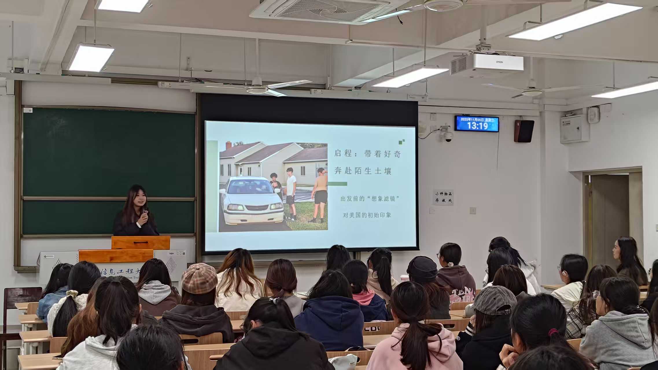 11月4日活动中,王菁博士以全英文开展“西方文化与礼仪——餐桌礼仪”讲座,通过场景演示提升学生跨文化实践能力;尹晓娇老师则围绕“海外硕士申请攻略”,系统讲解留学规划,为学生升学提供专业参考。11月5日活动中,温皓杰、罗诗秀、蔡欣三位同学分享海外实习经历,讲述在跨文化环境中的职业认知与自我成长;ACCA成都代表处王怀蜀老师亦就国际人才趋势作专题报告,助力学生拓展全球视野、明确发展方向。