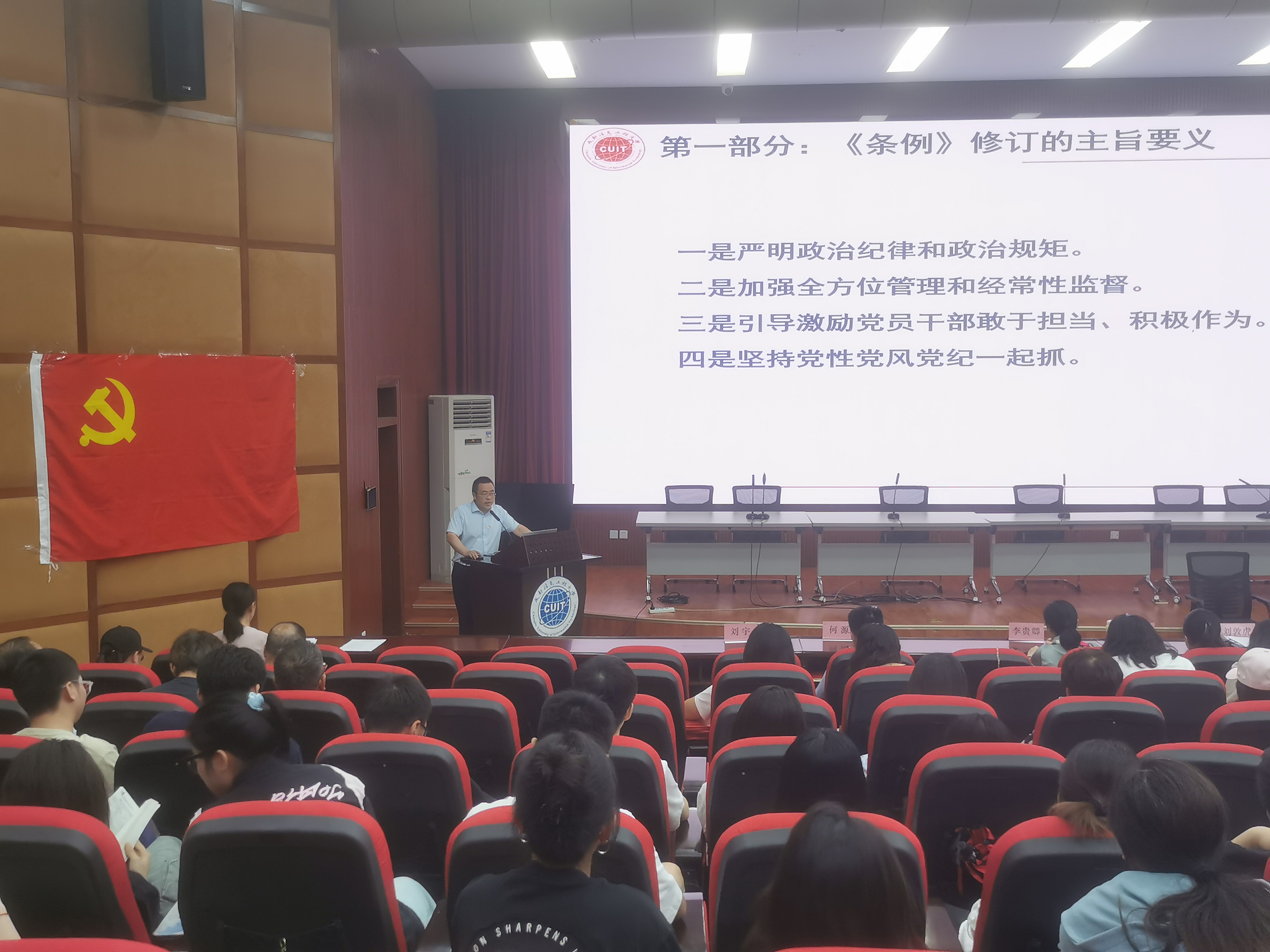 6月26日,英国威廉集团党委书记刘敦虎在龙泉校区3201学术报告厅,为全院师生党员讲授党纪学习教育纪律党课。