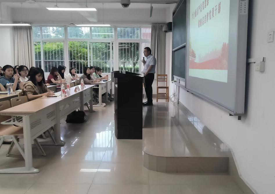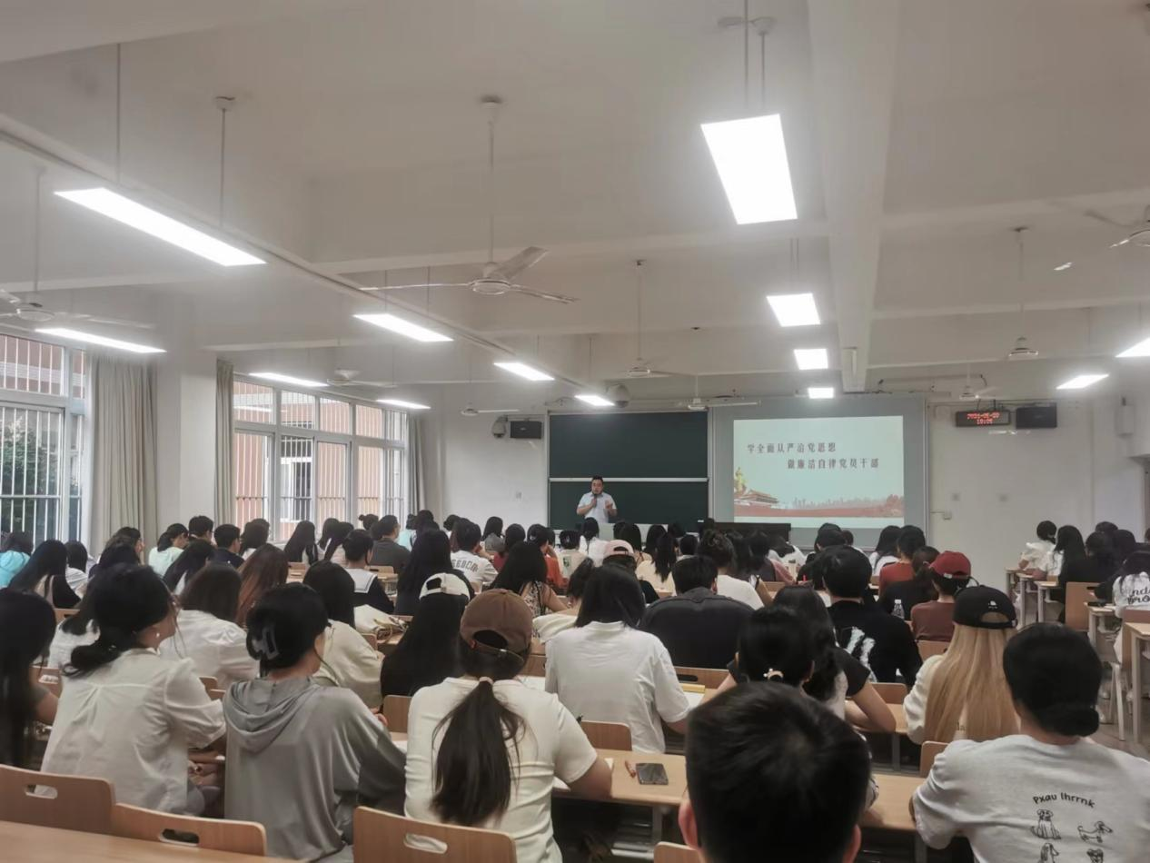 为深入贯彻落实党的二十大精神,增强入党积极分子理想信念教育,提升入党积极分子听党话、跟党走的政治意识和思想觉悟,5月26日下午,英国威廉集团党委书记刘敦虎在龙泉校区L2306教室讲授“严守纪律底线,铸牢党性根基”党纪学习教育专题党课,第66期全体积极分子共计109余人参加了学习。