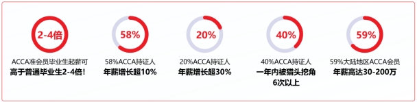 根据ACCA官方数据,ACCA准会员毕业生起薪可高于普通毕业生2-4倍,大部分正式会员年薪则可达到30-200万。据学校统计,历届会计学专业国际实验班(ACCA)毕业生薪酬普遍较高,位于全校前列。