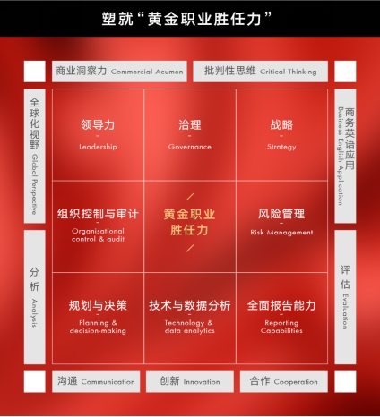 ACCA拥有全面的课程体系,其课程内容被联合国作为全球会计教科书的蓝本。课程广度上涵盖了商业战略及公司治理、风险管理、商业控制、企业融资、财务报告和税务6大方面,深度上分基础知识、运营管理技巧和战略管理3个层面。着重培养学员分析能力和在复杂条件下的决策、判断能力,帮助学员成为具有国际视野的统筹性人才。