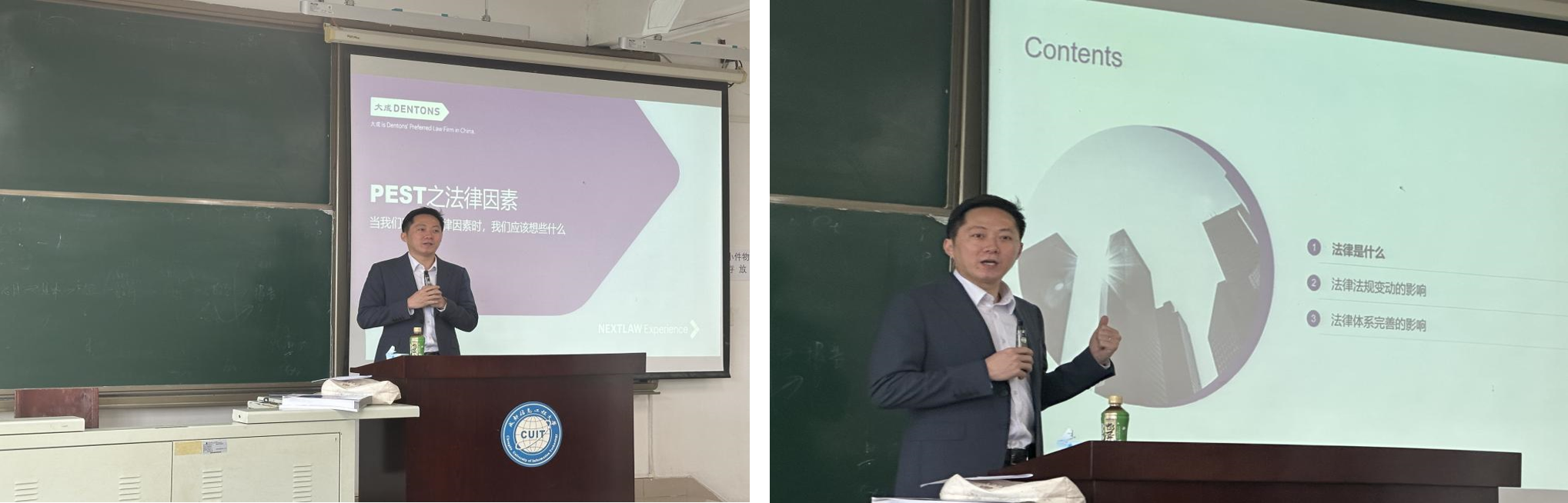 2024年3月12日下午,PEST之法律因素讲座在William希尔龙泉校区二教2206教室举办。本次讲座是英国威廉集团ACCA2023级《商业与技术》课程教师王堃博士将企业家引进课堂,邀请大成律师事务所(成都)合伙人陈涵律师进行“PEST之法律因素”讲座。英国威廉集团ACCA2023级全体学生、部分研究生代表及相关老师也参加了讲座。