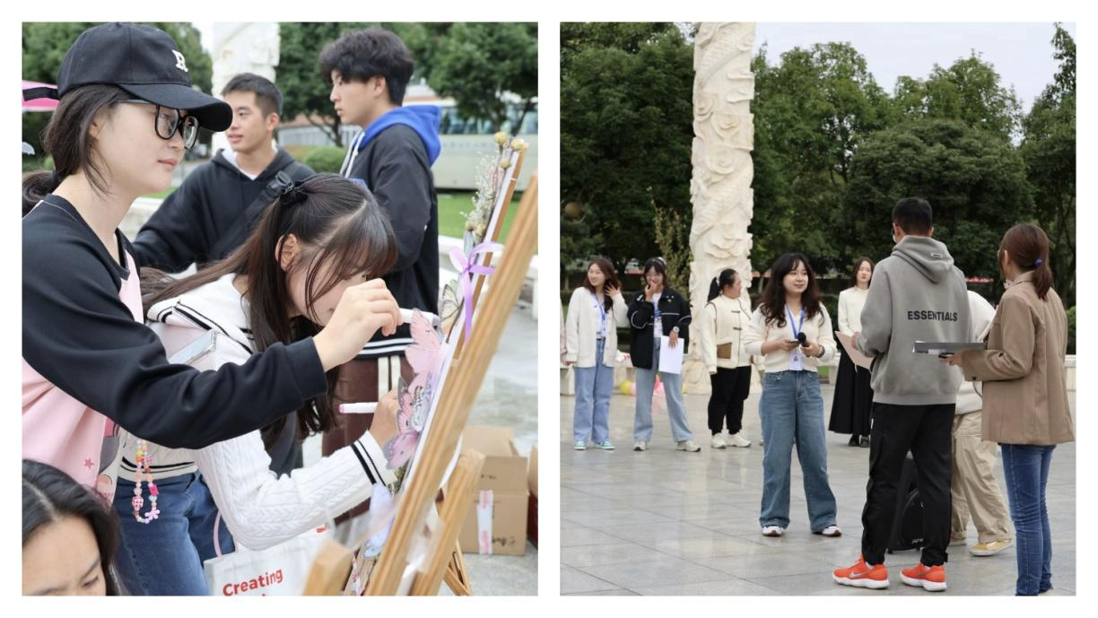 活动第二项进程,ACCA联合会组织ACCA国际实验班2023级新生在九龙柱广场开展了一系列洋溢青春活力的迎新活动。