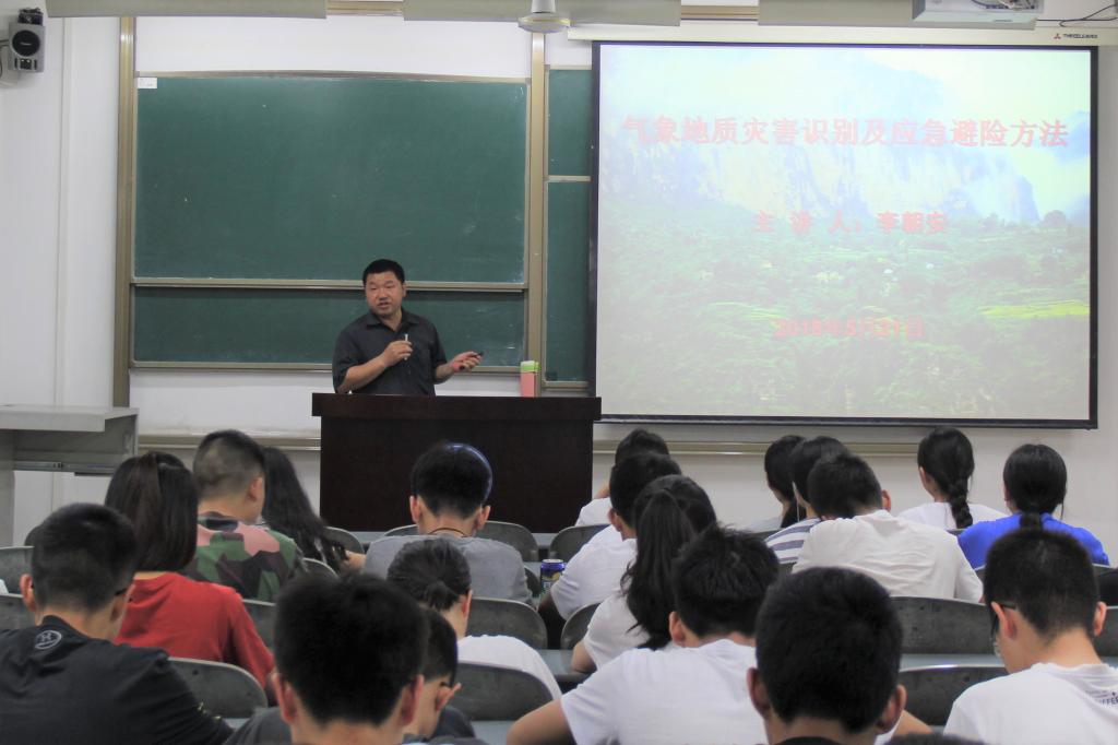 讲座上,李老师首先通过展示一系列全国各地气象地质灾害事故的照片,让同学们真真切切的去感受其强大的危害。随后,李老师又对地质灾害防治工作宗旨的三个方面加以详细讲解。紧接着,李朝安老师阐述了四川省气象地质灾害的基本情况,结合气象地质灾害基本知识,指出四川省气象地质灾害频发的主要影响因素,告知各个意外情况下所要采取的相应措施,让大家学会在日常生活中逐渐提高安全意识,奏响生命的安全之歌。最后,李老师呼吁大家:为自己负责,为他人负责,关爱生命,请给生命加一道安全防线。