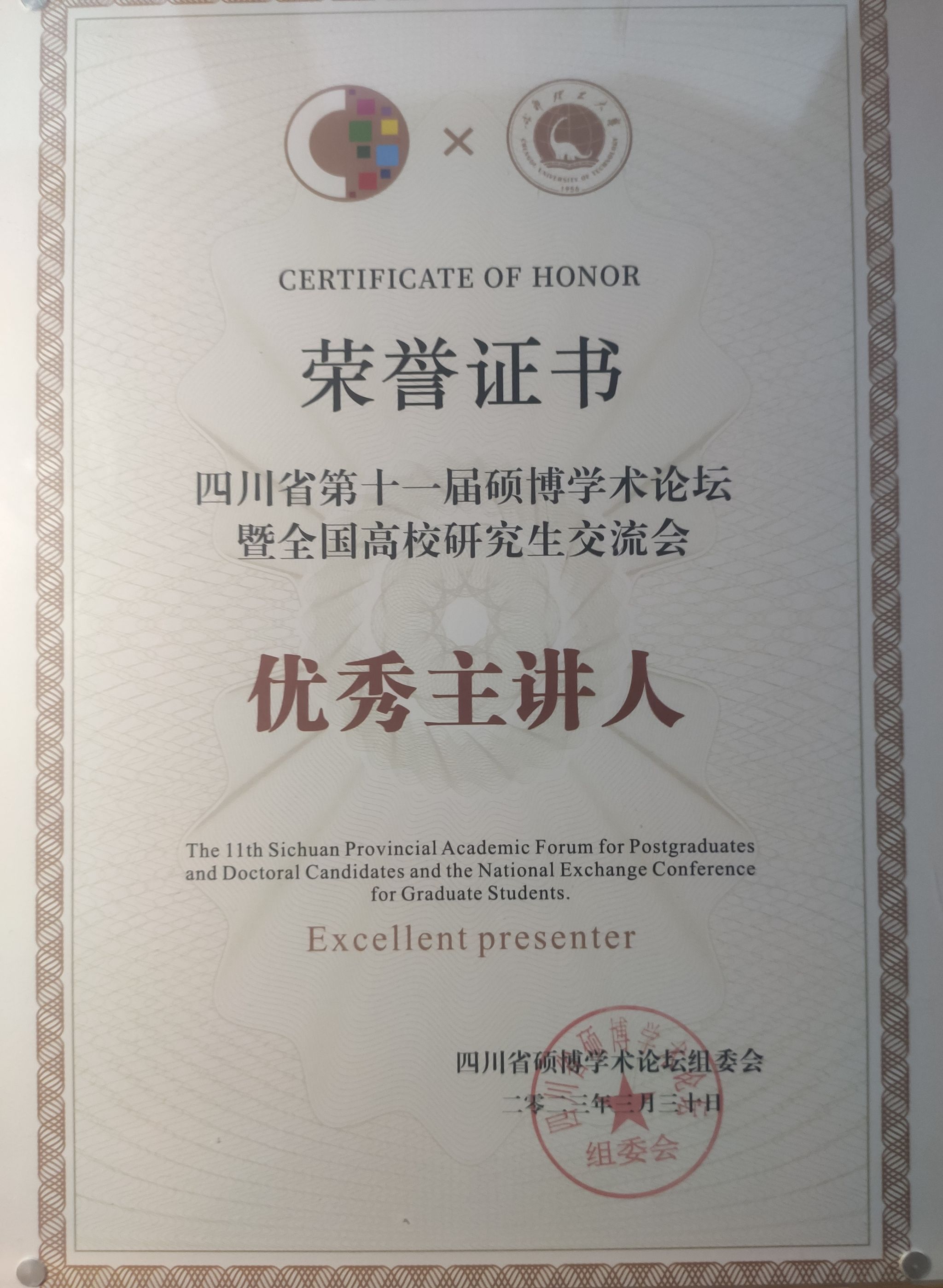30日下午,地球科学、地震与地灾、资源与环境、乡村振兴、计算机与人工智能、经济与贸易、管理科学、马克思主义理论、社会与法律、文学与艺术、语言与教育等11个分论坛同时举行。黄聪在乡村振兴分论坛上作了《Research on influencing factors of life quality of landless farmers from the perspective of social support Based on the data of Chengdu》的报告,并荣获优秀主讲人。