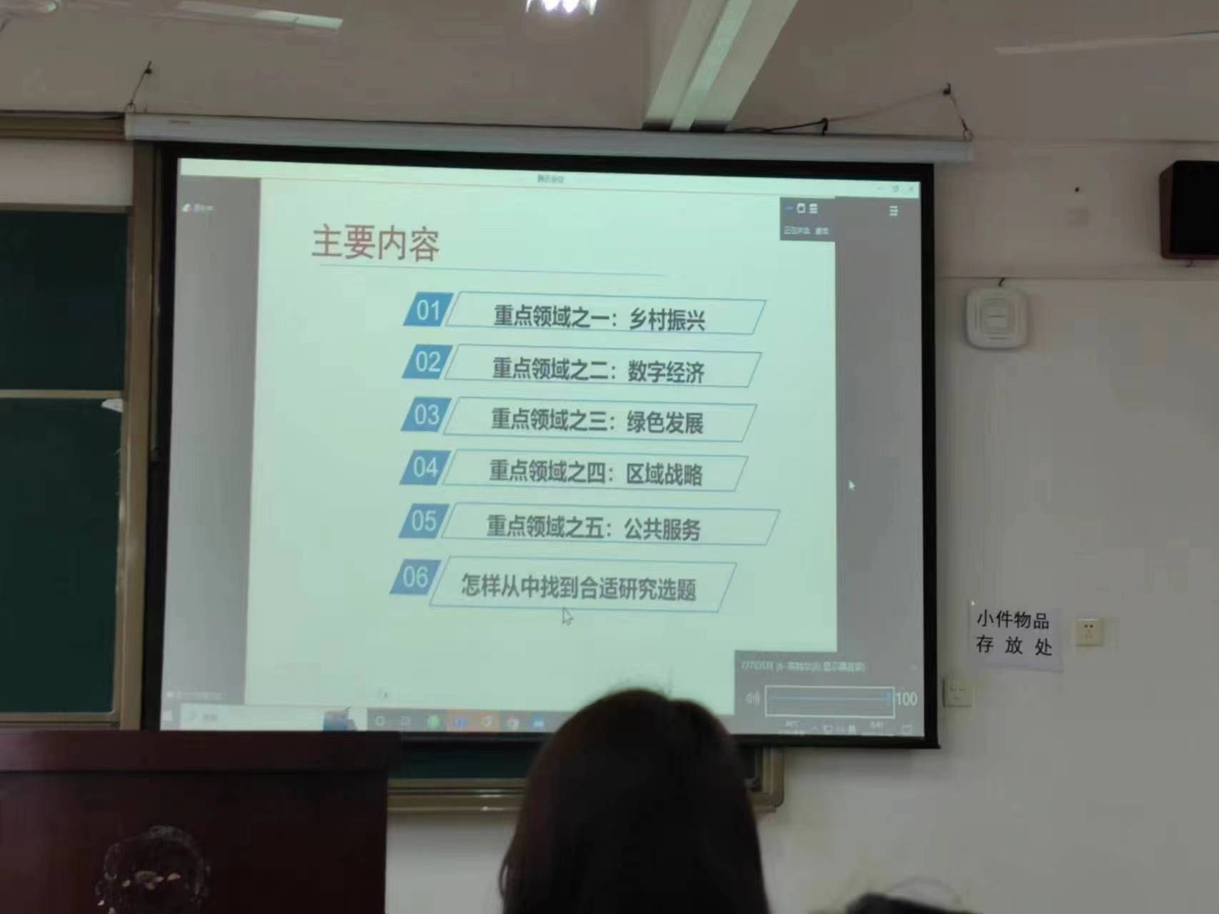 讲座从六个部分展开,分别为乡村振兴、数字经济、绿色发展、区域战略、公共服务、怎样从中找到合适研究选题。黄教授重点讲解了乡村振兴的有关政策及相关研究,介绍了数字产业化的前沿方向,即培育壮大人工智能、大数据、区块链、云计算、网络安全等新兴数字产业,提升通信设备、核心电子元器件、关键软件等产业水平,鼓励企业开放搜索、电商社交等数据,发展第三方大数据复产业,促进共享经济、平摊经济健康发展。