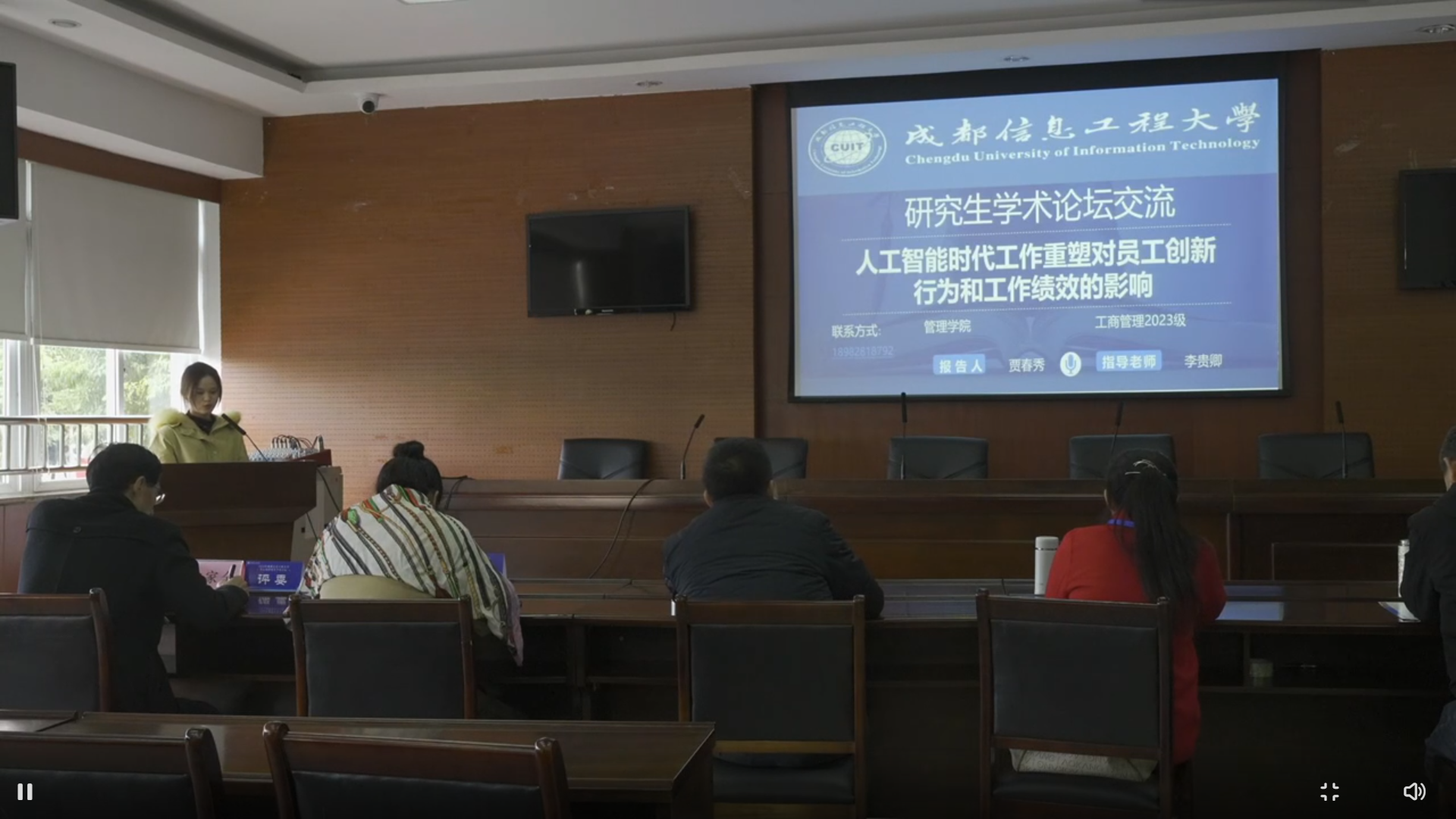 工商管理学23级贾春秀分享了《人工智能时代工作重塑对员工创新行为和工作绩效的影响》,基于工作重塑理论,分别引入工作投入作为中介变量和情绪管理能力作为调节变量,构建工作重塑对员工创新行为和工作绩效的影响模型。通过对收集的 304 份有效问卷数据进行实证分析,结果表明:工作重塑对员工创新行为和工作绩效有显著正向影响,工作投入在工作重塑对员工创新行为和工作绩效的影响中都有部分中介作用;情绪管理能力在工作重塑对员工创新行为和工作绩效的影响中都起到了正向调节作用。本研究不仅丰富了工作重塑、工作投入、情绪管理能力、员工创新行为和工作绩效的理论研究,也为面临转型升级的涉农企业如何提高员工的创新行为和工作绩效,提供了实证依据和合理建议。