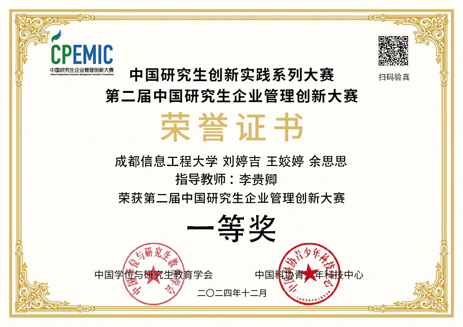 参与中国研究生企业管理创新大赛总决赛荣获一等奖