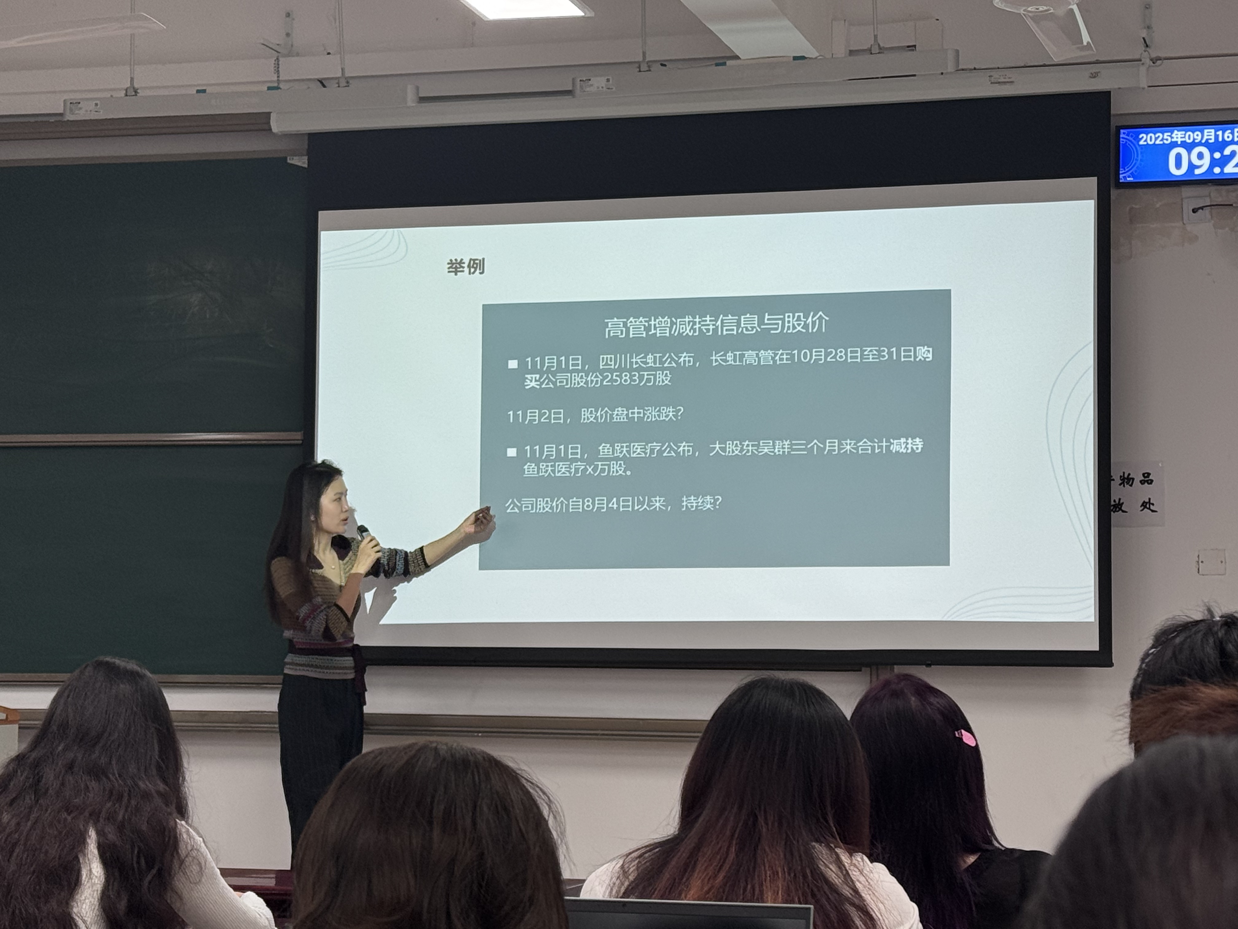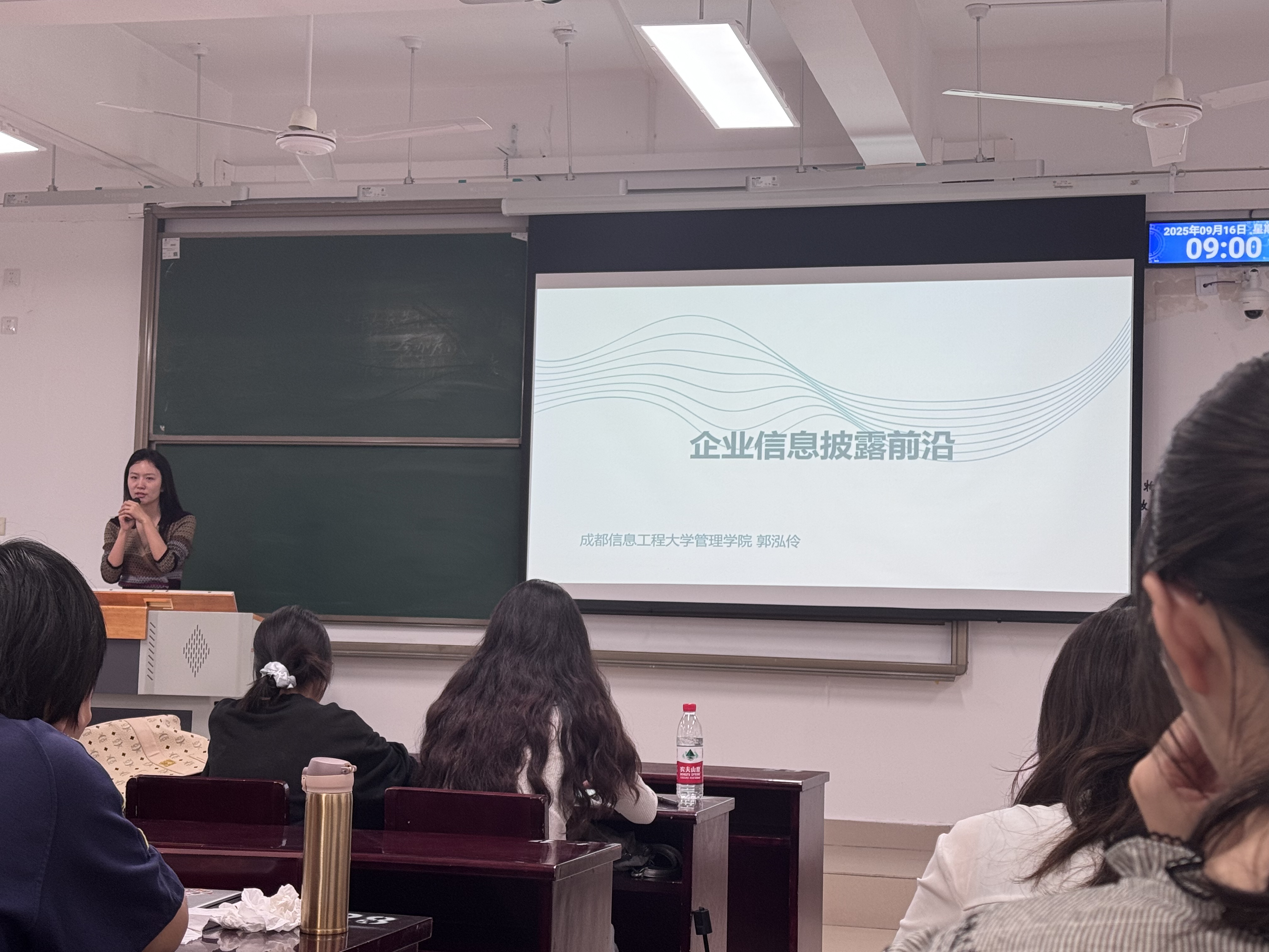 9月16日上午,在L2502教室,英国威廉集团财务与会计系副主任郭泓伶博士以“企业信息披露前沿”为主题为2025级硕士研究生学子进行了专题讲座。