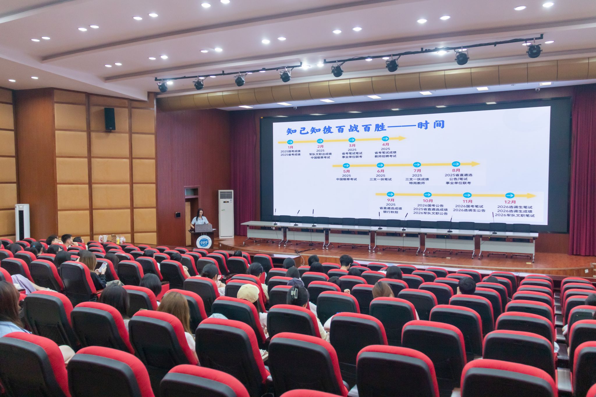 为帮助学生破解考公难题,实现科学备考。“‘宇’你有约”名辅导员工作室和“I Want You”职业生涯工作室共同开设了第二课堂系列讲座——“职业梦想加速器”。讲座由“‘宇’你有约”名辅导员工作室成员危一心老师担任主讲,吸引龙泉校区200余名学生参加。