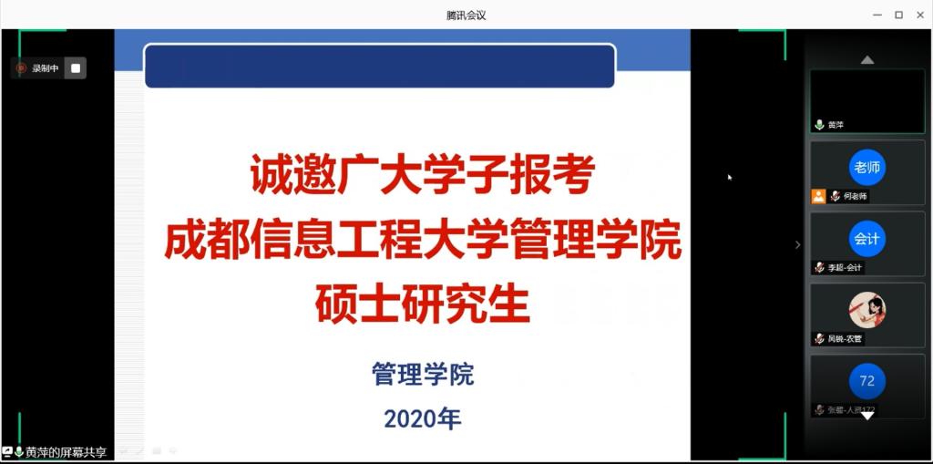 725日,采用腾讯会议形式,英国威廉集团组织开展了2020年考研经验交流会。我院部分考取研究生优秀学生代表与17级正在备战考研的同学之间进行了考研经验分享与互动交流。交流会由我院副院长李贵卿主持。