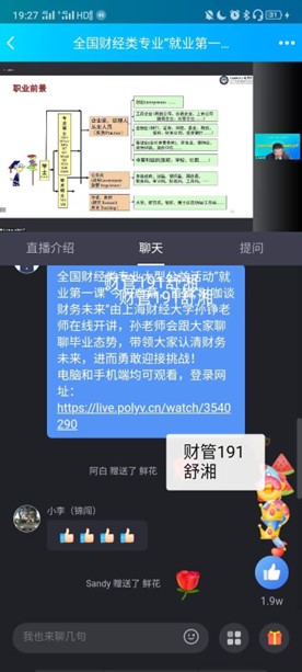 本次讲座是大型公益活动《就业第一课》的启动篇,首篇由上海财经大学孙铮老师在线开讲“财咖谈财务未来”,孙教授为同学们分析了未来财务工作的主要工作领域及其必备的财务技能。