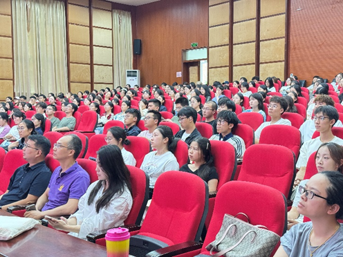 首先,财务与会计系副主任郭泓伶博士以“我的人生我规划”为题,介绍了会计与财务管理专业的职业发展前景。她指出,在数智化时代背景下,行业亟需具备业财融合及新技术应用的复合型财会人才,鼓励新生在夯实专业基础的同时,积极参与学科竞赛和创新创业训练计划,通过实践提升核心竞争力。郭老师还介绍了财务与会计系的师资情况和近年部分学生的升学、就业情况,让同学们了解到我系的专业特色,是构建“数智+双碳+会计”的智能会计人才培养生态圈。