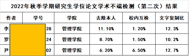 2022年秋季学期研究生学位论文学术不端检测(二检)结果