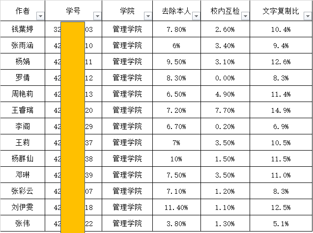 1、百分比认定(文字复制比=去除本人+校内互检)