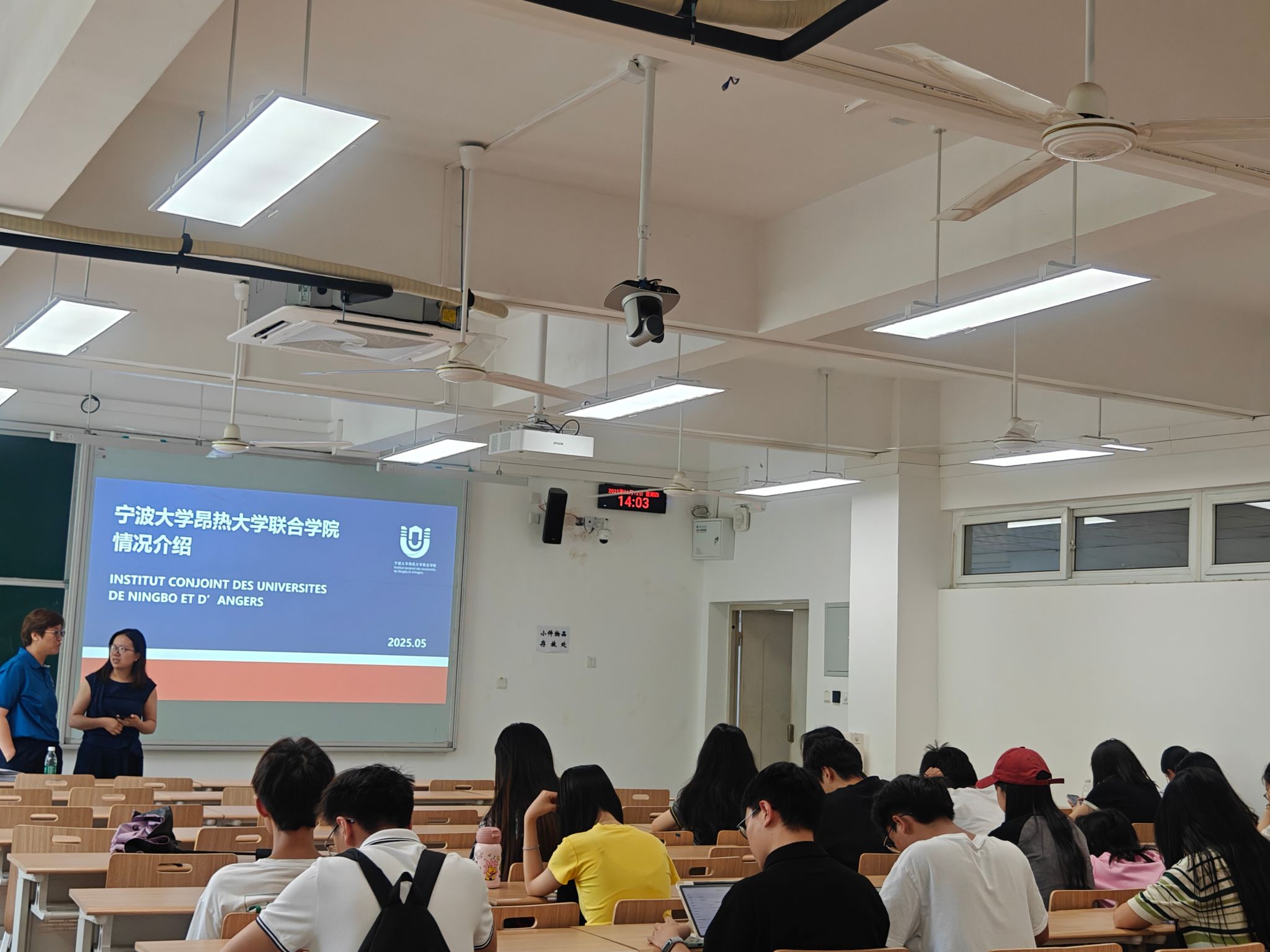 2025年6月12日下午,英国威廉集团在龙泉校区L2106教室举办“宁波大学昂热大学联合学院招生宣讲会”。宁波大学昂热大学联合学院副教授、博士生导师谢慧孜担任主讲,100余名学生到场参与。