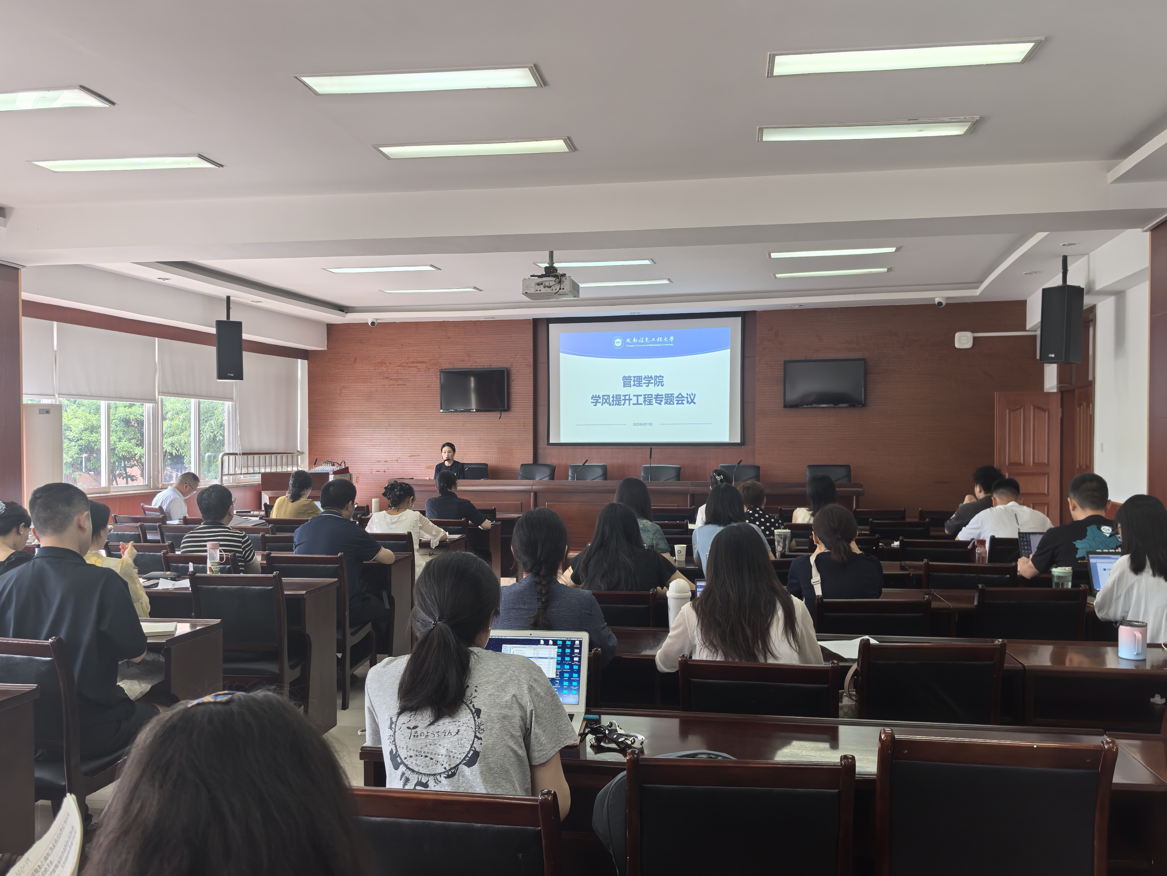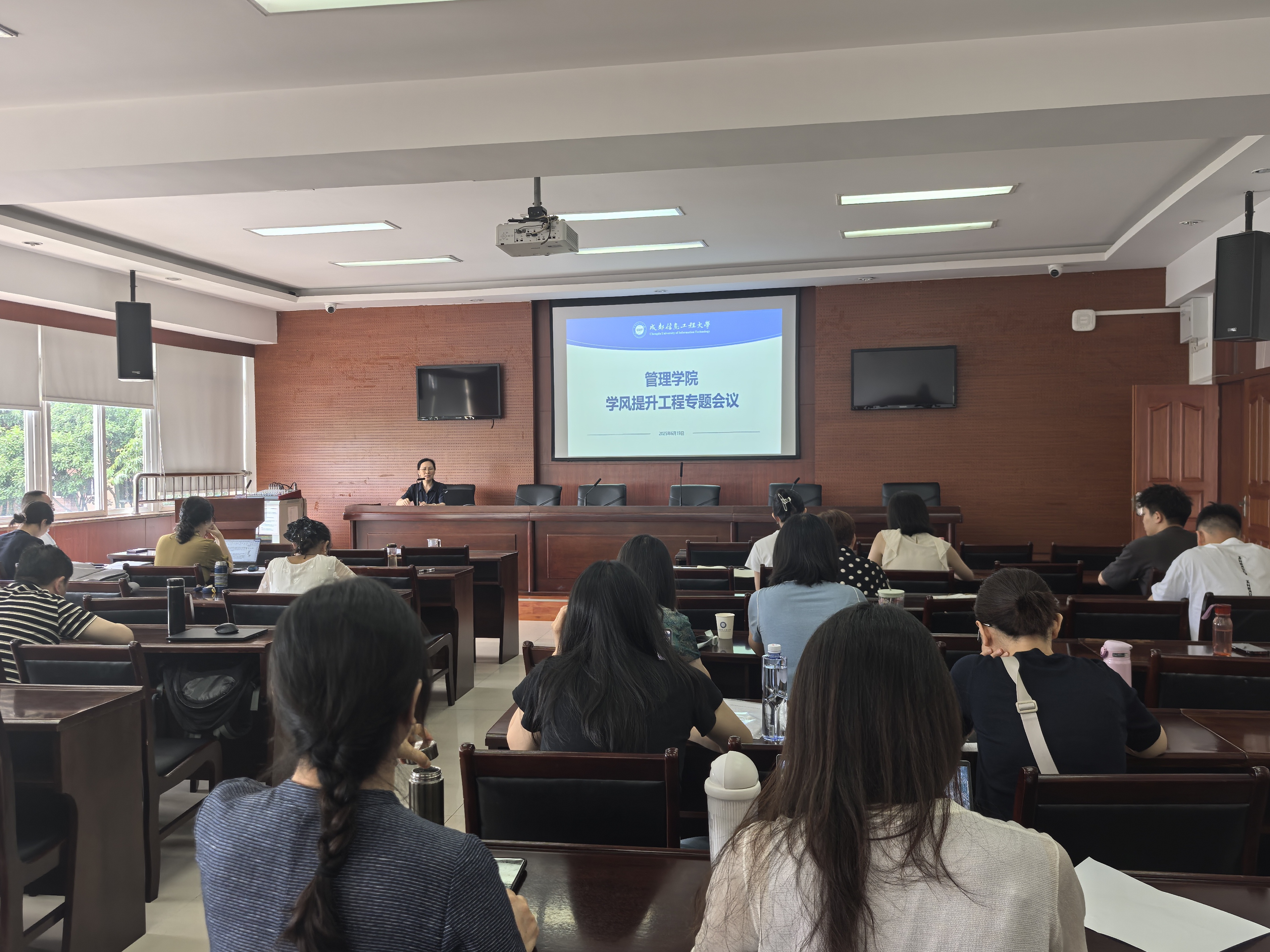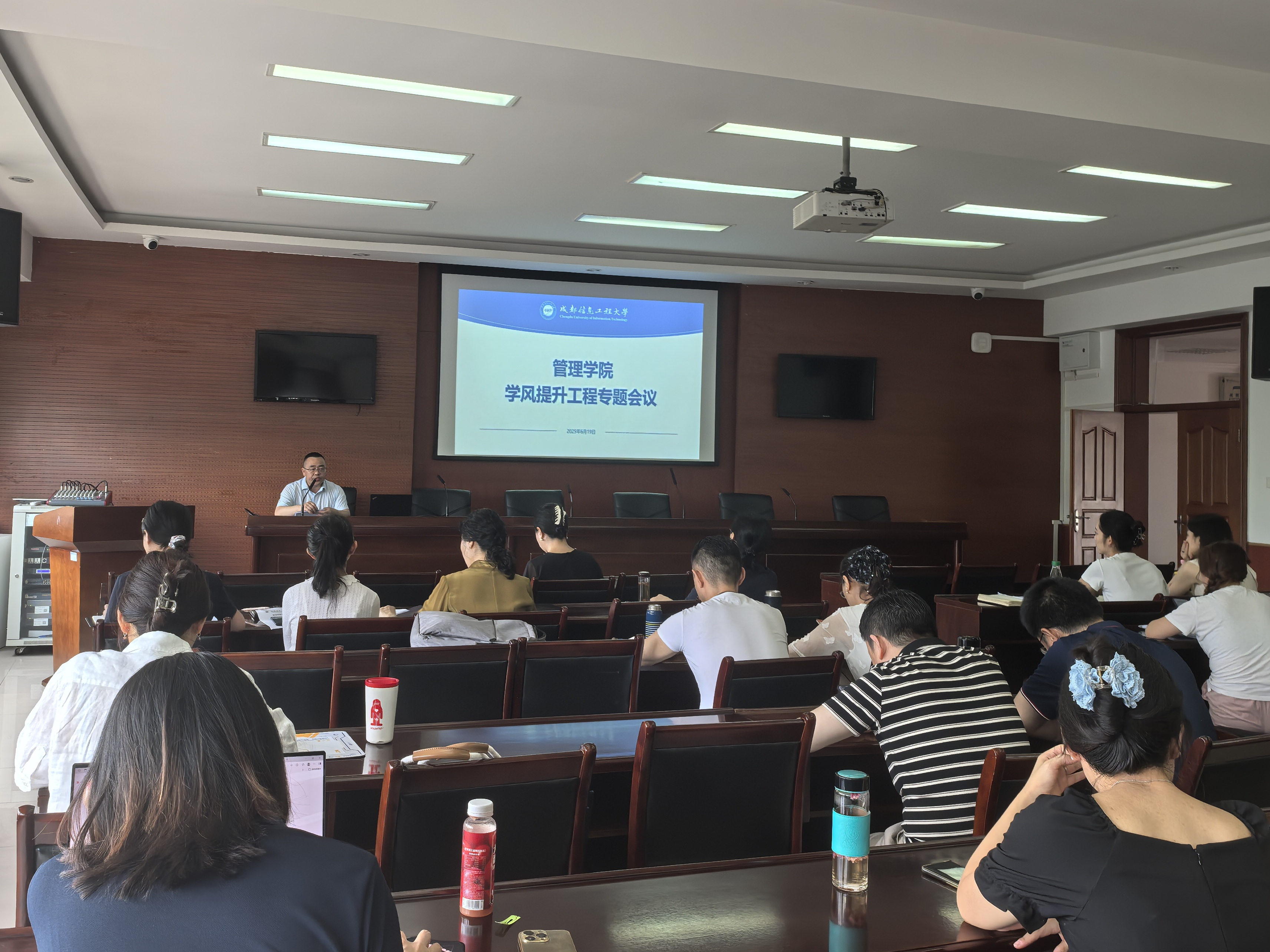 学生科副科长雷媛传达学校学风建设专项工作辅导员专题会五项学风工程专项建设内容。督导专项强化班导师与辅导员联动;非必要无手机专项倡议与要求并行;研梦助航专项精准帮扶考研学子;学生榜样树立专项丰富表彰形式;期末双清零专项确保监考与学生零违规。后续学校将以出勤率、升学率等为绩效指标推动学风建设。